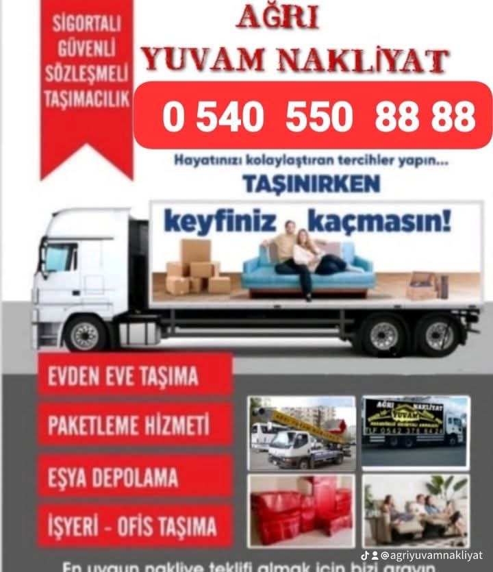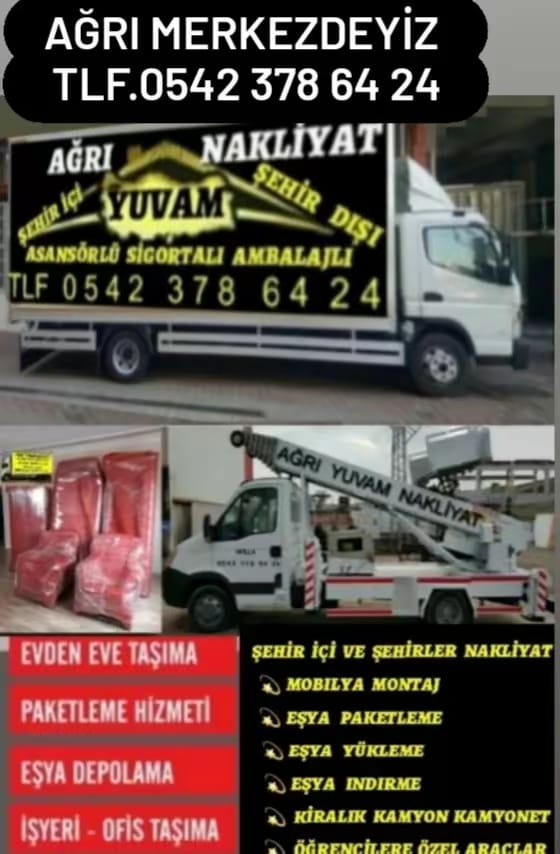 Ağrı Yuvam Nakliyat , profesyonel ev ve ofis taşımacılığı hizmetleri sunar. Güvenli, hızlı ve uygun fiyatlarla eşyalarınızı özenle taşır. Asansörlü taşıma, paketleme ve montaj hizmetleriyle müşteri memnuniyetini ön planda tutar. Ağrıda taşınmanın en kolay yolu Yuvam Nakliyat!